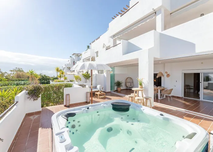 Apartment With Private Jacuzzi Near Beach & Golf Estepona spacieux est situé à moins de 2 km du Parc d'aventure Selwo et à 2,1 km du Golf Flamingos. La résidence vous invite à profiter d'un jacuzzi disponibles sur place.